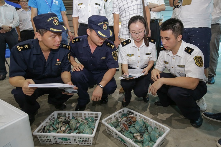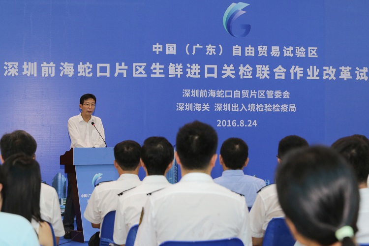 2016年8月24日,在前海湾保税港区内举行了前海蛇口自贸片区生鲜进口关检联合作业改革试点启动仪式,全国首创的生鲜进口关检联合作业场暨进口生鲜试验基地正式启用,为深圳市民能吃上鲜活的跨国海鲜又开辟了一条便捷通道。前海蛇口自贸片区管委会、深圳市经济贸易和信息化委员会、深圳海关和深圳出入境检验检疫局、招商局集团的领导,以及各大媒体记者、企业代表共同见证这一仪式,仪式现场顺利完成了首批跨境生鲜关检联合作业。