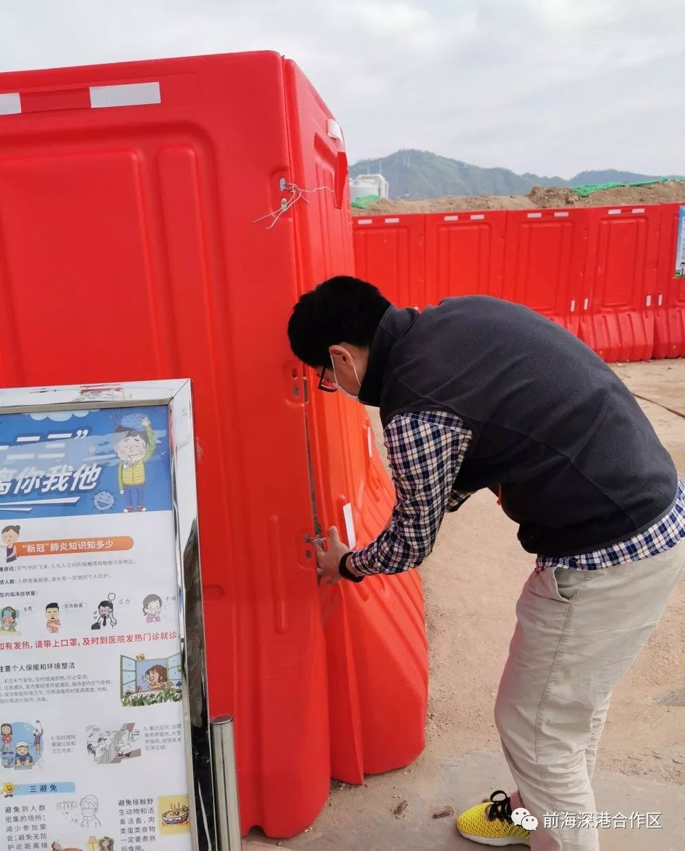 张来福介绍,前海十单元国际学校项目部在前海管理局的大力协助下采取了极具特点的三种疫情防控措施:一是设立党员先锋岗,积极配合协助基层联络员的各项工作;二是充分利用项目部场地优势,为后续进场工人设立隔离区,并在隔离区设有专门的办公场地;三是挖掘项目参建单位有相关医疗防疫知识的医护人员,专门帮助场内开展防控防疫的指导工作。