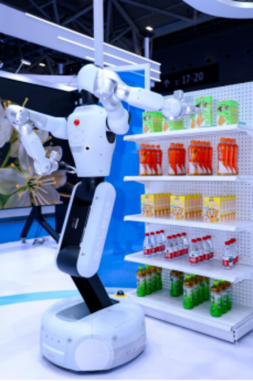 展馆的银河通用机器人则带来全球首创 “具身智能+城市生活”新模式。机器人现场模拟零售货架场景,精准抓取各类商品,“成功率真的超95%!”观众对此不时发出赞叹。