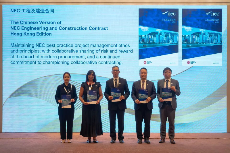 11月27日,在香港2025年新工程合约(NEC)亚太会议上,前海管理局与香港发展局、汤玛斯特福德公司一起发布了新工程合约(NEC)香港版的首个中文译本