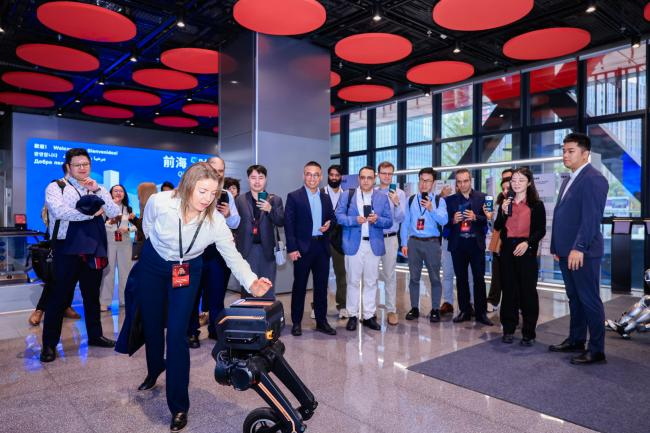 参访团一行来到前海哈罗外籍人员子女学校,深入了解前海为国际人才家庭打造的高品质教育配套,亲身体验“安心创业、舒心生活”的前海温度。随后,参访团走进前海5号楼,近距离触摸智能机器人、AR眼镜、3D打印等前沿科技产品,现场感受前海充满活力的创业生态与强劲的科技发展脉搏。