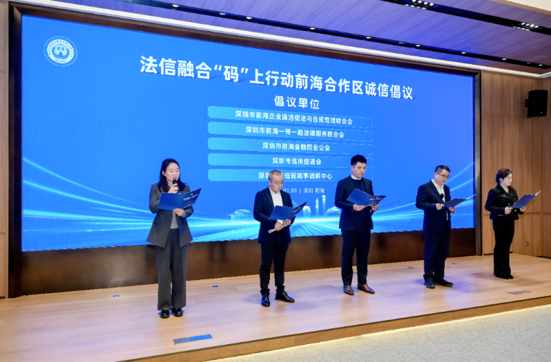2026年1月9日,“法信融合‘码’上行动——前海法治+信用首批助企举措发布仪式”在前海举办。活动由前海管理局联合前海法院、前海检察院、深圳知识产权保护中心、前海公证处等单位共同主办,现场发布15项激励信用良好企业的精准助企举措,标志着前海“法治+信用”深度融合建设进入新阶段。前海各法治机构、行业协会及企业代表近100人参加活动。