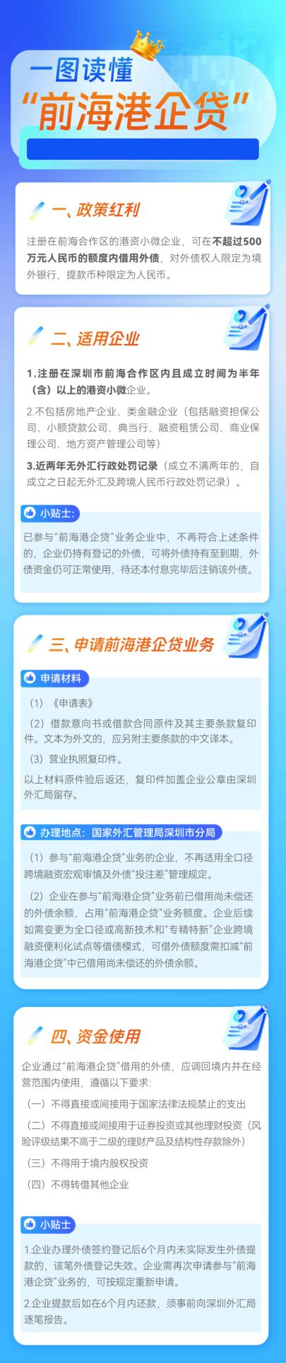 国家外汇管理局深圳市分局详细介绍了“前海港企贷”政策及其适用范围、申请流程、资金用途及合规监管要求等,就该政策在解决港资企业、特别是轻资产小微企业境内融资堵点难点方面的积极作用,作了具体说明。