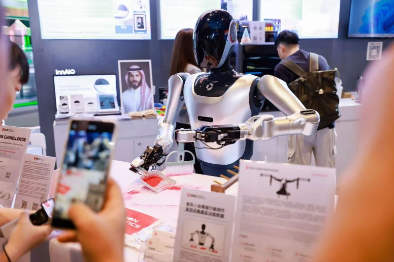 深圳逐际动力科技有限公司的“Oli”是全球首例实现“群体化自主出舱”的全尺寸人形机器人,当天推出的多场机器人表演吸引了来自美国、英国、中东、加拿大等地客商的关注,“大家对机器人前沿技术及灵活性是最关心的,后续应用领域包括工厂拣选、物料搬运等”,逐际动力现场工作人员如是说。