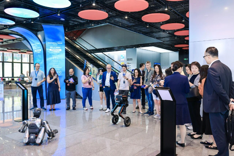 参访团首站来到“前海五号楼”——这座矗立于改革前沿的国际人才地标。在这里,人形机器人、双足机器人、AR眼镜、3D打印等前沿科技产品,创新应用让人眼前一亮,全方位展示了前海在技术攻关、创新创业方面的最新成果。
